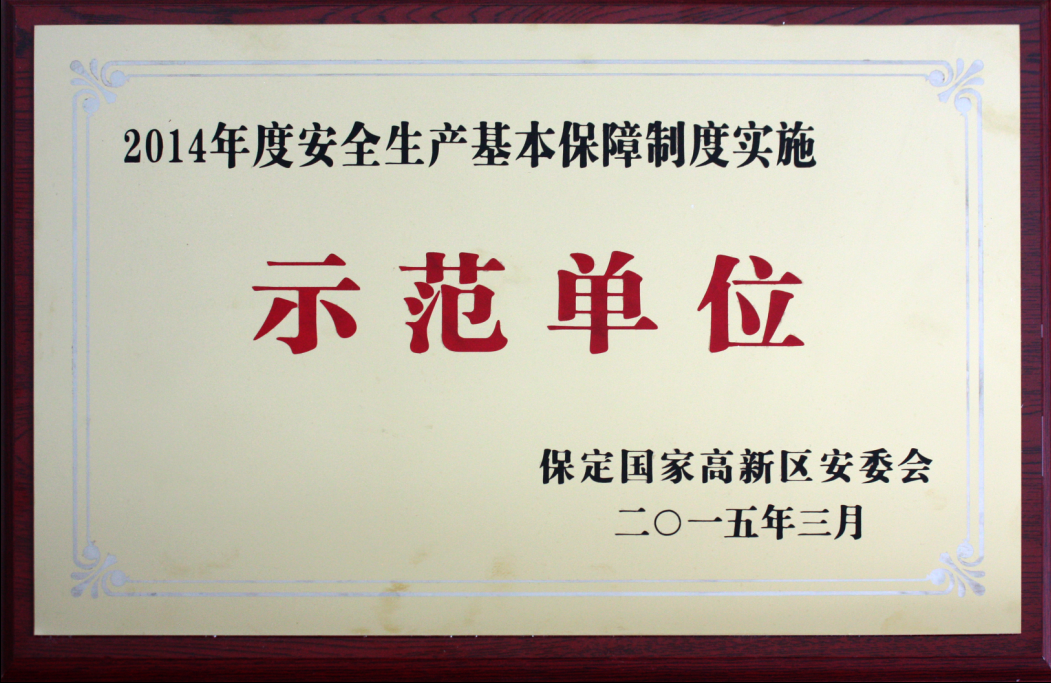 2015年3月我公司獲得2014年度安全生產(chǎn)基本保障制度實(shí)施示范單位稱號(hào)