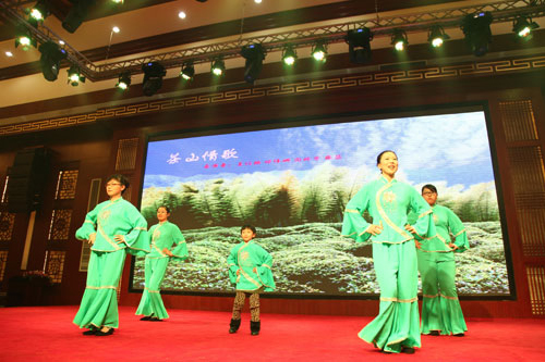 財(cái)務(wù)部員工正在表演茶山情歌